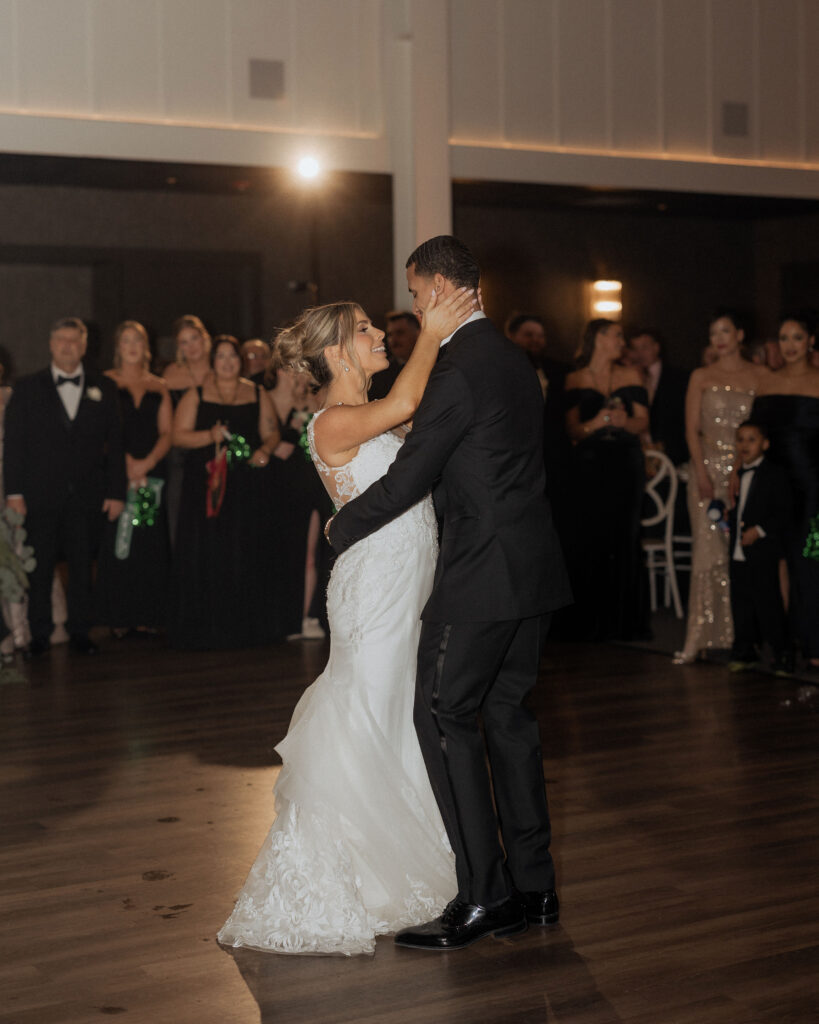 As the evening transitioned into the reception, the space transformed into a warm and celebratory setting. Candlelight, thoughtful details, and subtle holiday-inspired elements created an ambiance that felt festive yet refined — a perfect reflection of Christina and DJ’s vision.