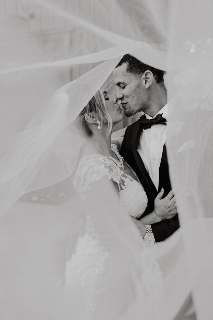 Winter weddings offer a unique opportunity for portraits — softer light, neutral tones, and an atmosphere that feels calm and romantic. The grounds of The Ivy at Ellis Preserve provided a stunning backdrop for Christina and DJ’s portraits, highlighting the venue’s versatility even in the colder months.